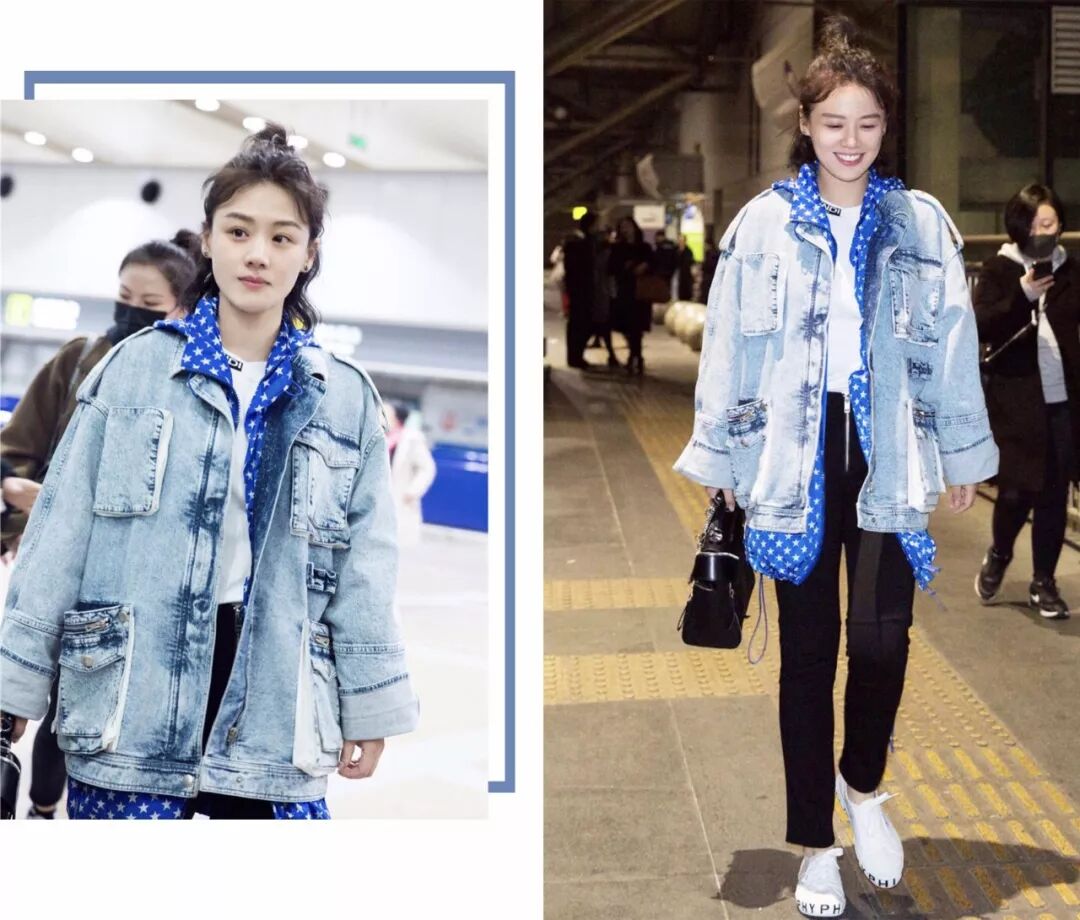 马思纯也非常喜欢这款扎发,杂乱的卷刘海搭配牛仔外套又萌又酷,很适合日常出行。