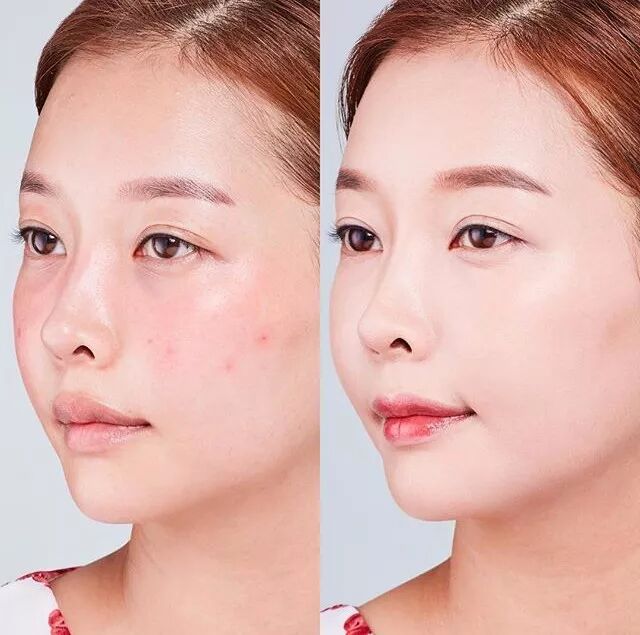 关于遮瑕力,官方给出的效果看起来还是很厉害的。光用一个气垫就能把脸上的泛红和痘印之类的瑕疵遮个七七八八。