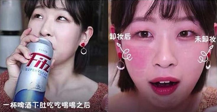 起因是洪真英在《人生酒馆》上喝酒之后,当场喝到脖子和耳朵红出天际,但是她的脸竟然还是完美妆容,白皙如初。