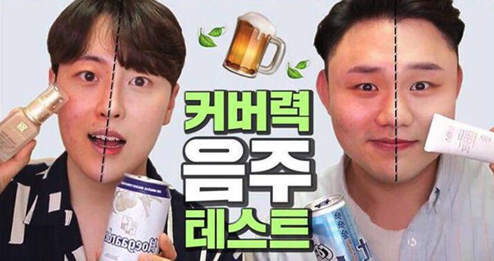 于是很多韩国博主开始上脸尝试,开启了画风独特的美妆视频——上好底妆后,先喝一杯~![]()