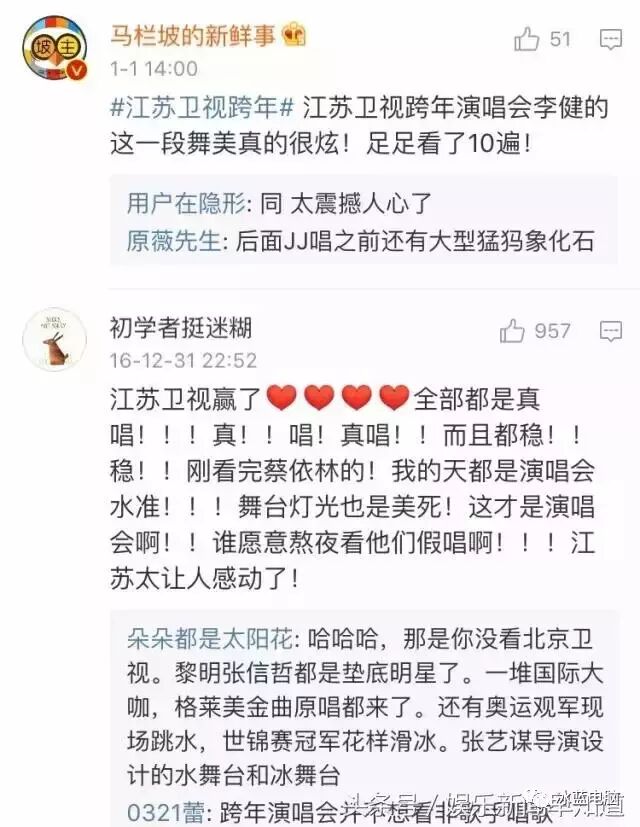 所以今年跨年演唱会可以算是颠覆了对于跨年的认知,因为从没听过12月30日算是跨年,也没有看过31日网络会员看直播,1号了才在电视上播的。但是看了这两天各档跨年晚会才明白,浙江卫视和湖南卫视确实整了不少幺蛾子。