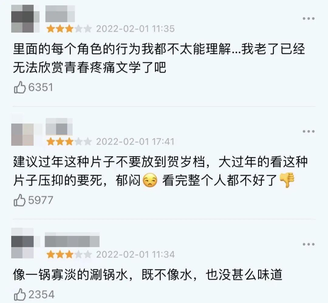 有说韩寒青春疼痛文学病犯了的,有说电影像刷锅水的。