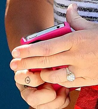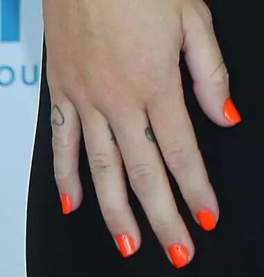 意义:Miley 把原本的图案做了一些着色,三角图案变成西瓜、眼睛也变成了蓝色眼珠,更是把外星人脸纹在无名指上。