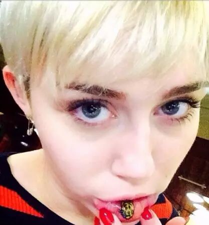 意义:Miley 和她的经纪人兼好友 Cheyne Thomas 做了相同的笑脸纹身,而且这个作品出自 Miley 之手。