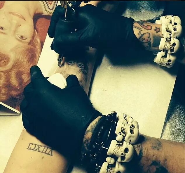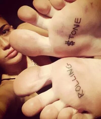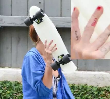 意义: Liam Hemsworth 是 Miley 当时的男友,而他本人又是扮演雷神的演员 Chris Hemsworth 的弟弟,当时两人感情很好,两人先后纹了一样的骷髅图案在脚跟附近以秀恩爱。