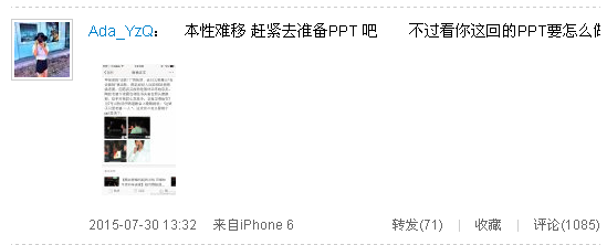 此新闻曝光后,有眼尖的网友当即指出,此女正是陶喆前女友陈心莹(Carina)!!有媒体电话访问陈心莹,对方听到“陶喆”名字,先是愣住不语,之后便挂断电话,似乎不愿多作回应。对此,网友们立马脑洞大开,纷纷评论“这次他会拍纪录片来澄清的,PPT如何满足的了他”“所以我觉得陶喆,文章,汪峰这些巨蟹男没救了。。。”“这次渣男不会用ppt了,应该要用word或者excel...可以帮他列个表 标题叫“这些年泡过的妹子”“你们知道陶吉吉有多努力吗?第一次出轨做PPT道歉,这次打算拍微电影道歉,下次纪录片,最后是电视剧,就这样,努力转型成演员....”