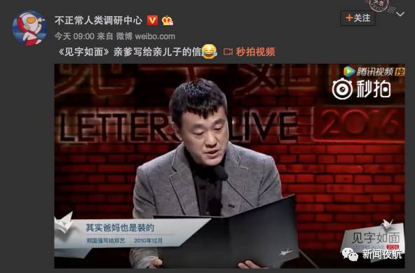 何冰读郑国强写给儿子郑艺的这封信的视频截图在网络走红,引来一大微博段子手、大V纷纷转发,读信秒拍视频登陆微博粉丝头条。