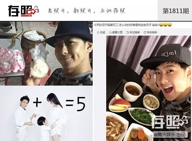 2015年8月,林志颖在微博上晒照,正式宣布爱妻陈若仪怀二胎(如图左下),为了帮老婆解馋,林志颖半夜直冲阳明山老店买包子,还因为和老婆一起吃宵夜胖了4公斤。在陪爱妻坐月子期间的林志颖满脸幸福喜悦,更是在微博晒出自己大吃妻子的月子餐,直称“真可口”,好像是自己坐月子一般。