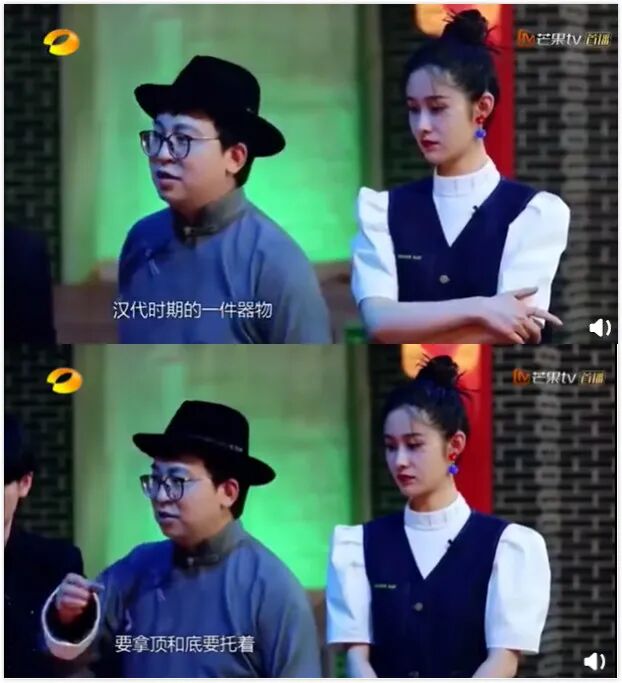 在某个综艺上,节目组邀请明星嘉宾们欣赏文物。