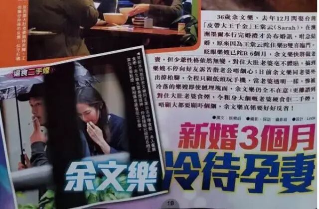 就在结婚还没过去三个月,香港媒体就曝出了,新婚不到3月,余文乐冷暴力怀孕妻子的新闻,在文中表示了正在怀孕的王棠云,被拍到经常一个人出行的照片,余文乐被曝出因为事业遭遇低谷,沉迷于游戏无法自拔,完全不理会怀孕的妻子,可以说是还没有长大,而对于已经40多岁的余文乐来讲,真心感觉是活在自己世界里的人,没有学会如何去承担,更何况是照顾已经怀孕的人了。