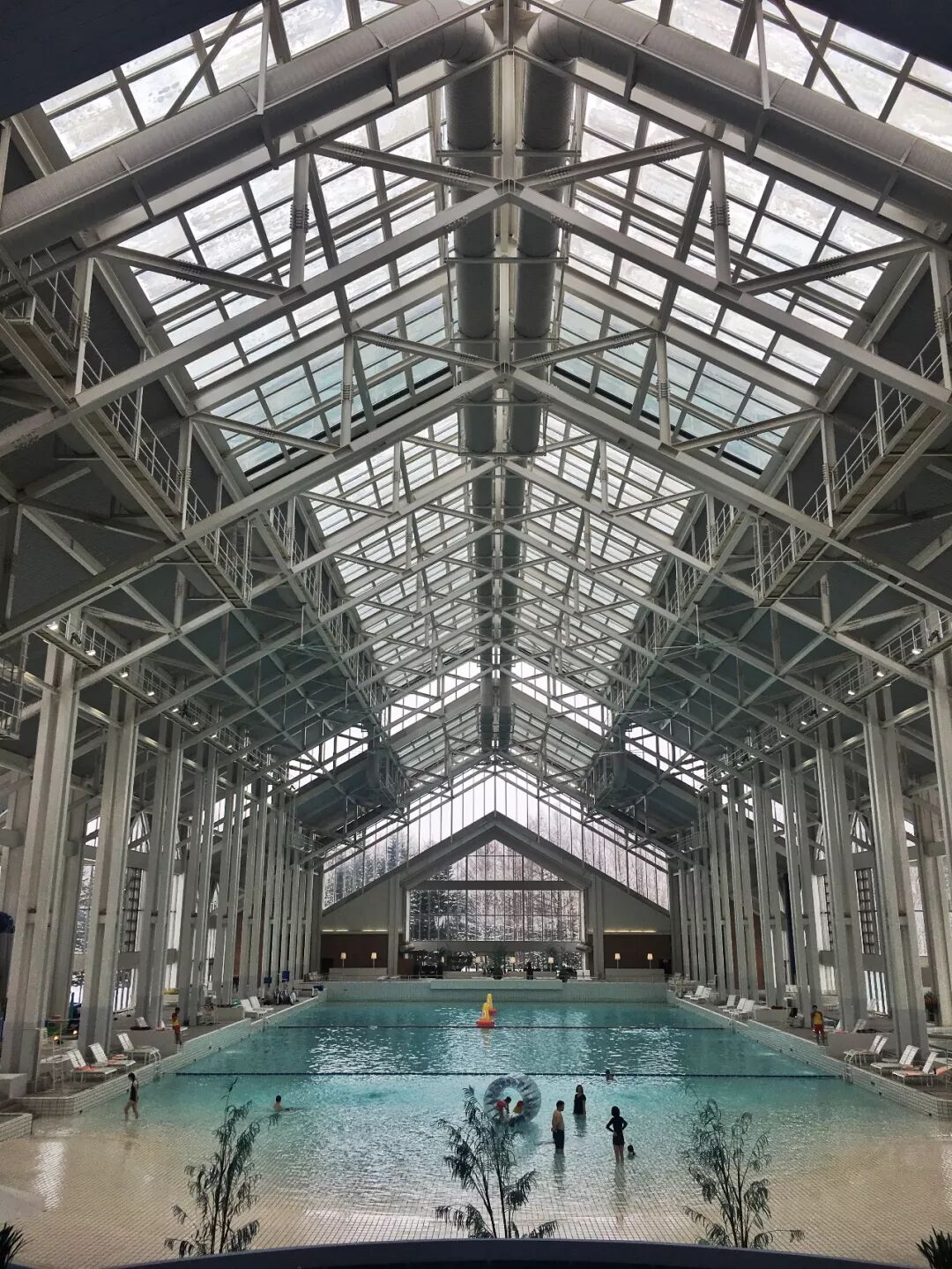 走出酒店,对面就是日本最大的室内人造海滩——微笑海滩(Mina Mina Beach)。这个全年开放的人造海滩也是这里另一大亮点,北海道冬季温度零下4-6度,因此准备好泳衣跃入人造波池也是很有意思的活动哟。