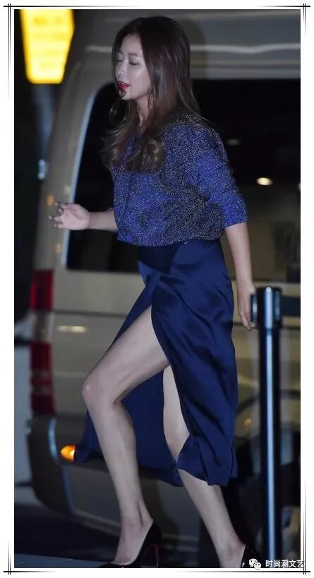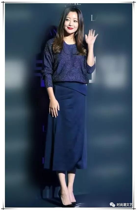 金喜善的衣品和身材还是很不错的,这次她穿了一身蓝色的裙装,上身是蓝色的针织长袖上衣,搭配了一条蓝色的半身裙,非常的优雅,脚上踩了一双黑色高跟鞋,显得不仅突显身材而且还女人味十足呢,不得不说金喜善的这身穿搭还是值得借鉴的。