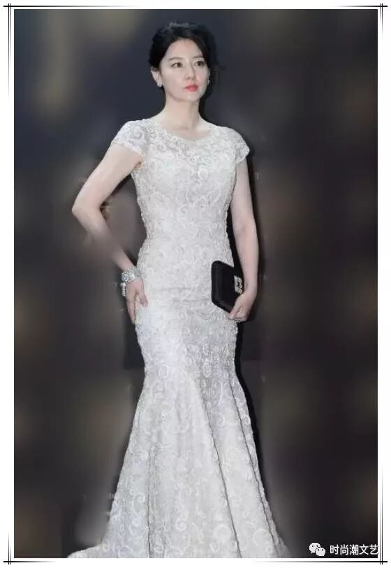 李英爱的身材也是超级好了,四十多岁的她不仅皮肤保养的好,连身材都这么的完美,她穿了一件白色的蕾丝长礼服,礼服非常的有设计感,包臀掐腰的设计非常的突显身材曲线,裙摆是鱼尾的设计,更加的优雅美丽。