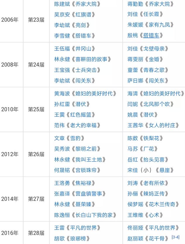 再看看06年至今金鹰视帝视后获奖者和他们的作品,都是有口皆碑。