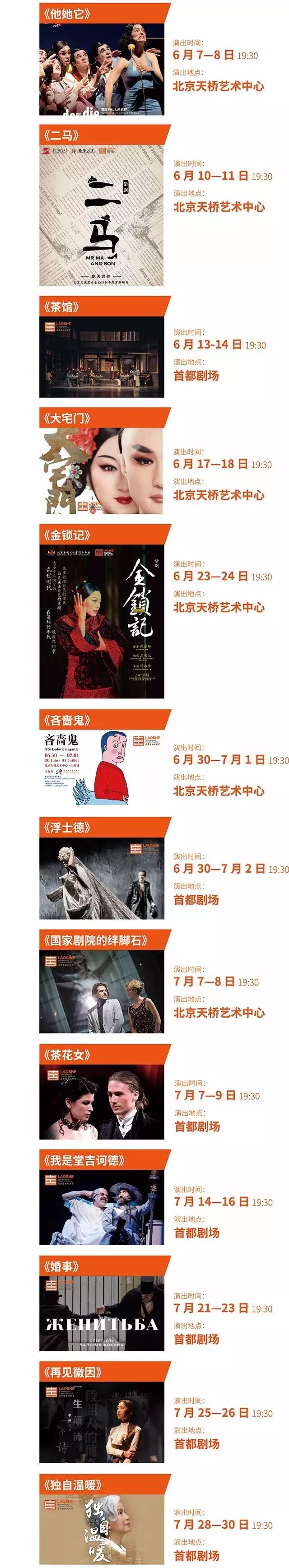 本届戏剧节将有来自中外总共13部展演剧目,让大家充分欣赏跨国界的戏剧艺术之美,关注人文精神。其中包括老舍先生的两部经典之作《茶馆》、《二马》,还有世界知名剧作家小仲马的《茶花女》、莫里哀的《吝啬鬼》、塞万提斯的《我是堂吉诃德》、歌德的《浮士德》 等,更有当代作家的剧作《金锁记》、《再见徽因》、《独自温暖》等。