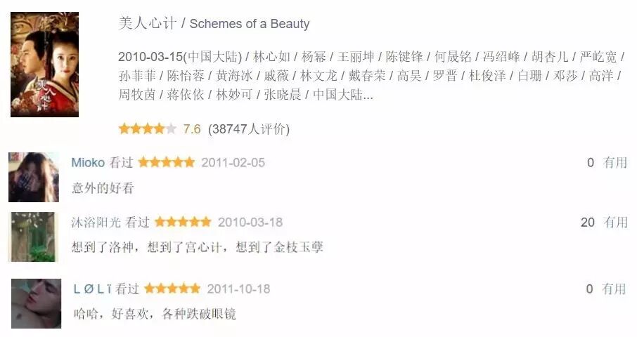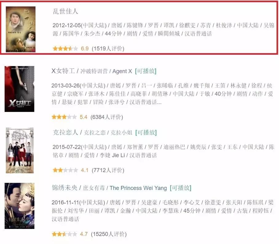 “佳人系列”的出品方是紫骏影视,翻开紫骏影视的“简历”,除了两部扭转民国剧市场的“佳人系列”之外,广受好评的《美人心计》、《美人天下》也是他们的作品。《美人心计》以7.6分的分数来说,在豆瓣国产电视剧里算是相当不错,观众反应也是好评如潮。