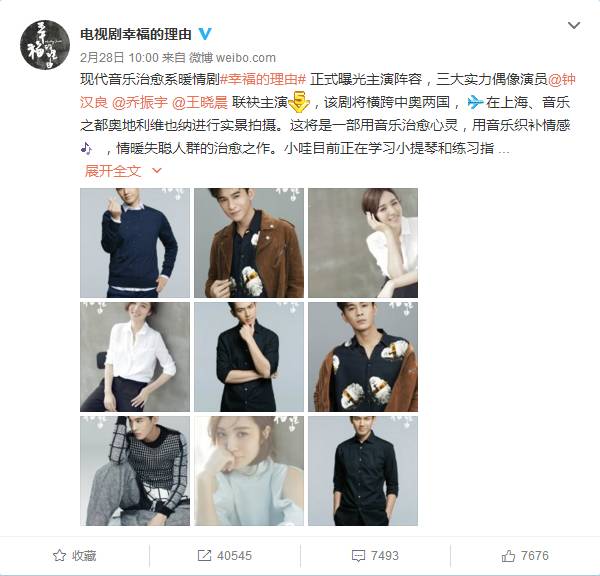 电视剧《幸福的理由》终于官宣了它的主演阵容,自曝光到现在,这个项目就颇为神秘!但就现在来看,这个豪华阵容就足够令人期待~