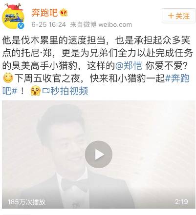 一直都说郑恺退出跑男,就在最后一期的时候,官博做了一个郑恺特辑,把郑恺这几年在跑男里的表现都cut出来。