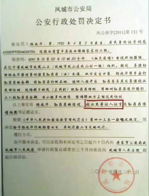 整个事件里,可以肯定的是,孙菲菲确实被打了,网上能找到当时的处罚决定书,一共两个打人者,一个被拘留7天,罚款200,另一个则没有找到。