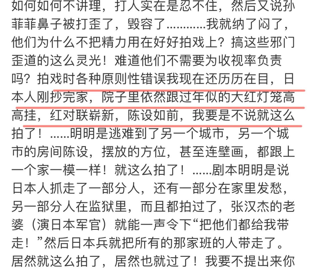 后来孙菲菲仔细回忆,觉得自己被打与那句话无关,在孙菲菲的控诉微博里,她指责剧组工作人员只会搞歪门邪道,对拍戏的种种原则性错误一点不管。她看不下去,把问题指出来,觉得就是因为这个,才招致了导演记恨。
