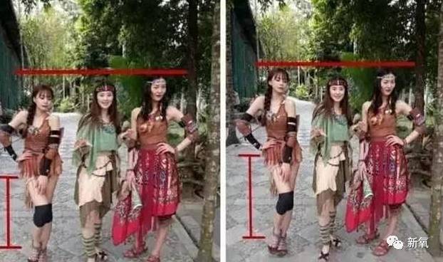 说到P腿,当然绕不开我们的P图小公主沈梦辰。这张著名的合影,人家可是能把自己P到和大表姐一样高!