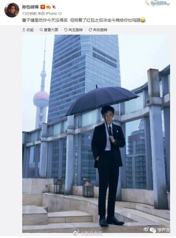 董子健没有得白玉兰,孙怡发微博安慰,当时还有人问这是你男朋友吗。