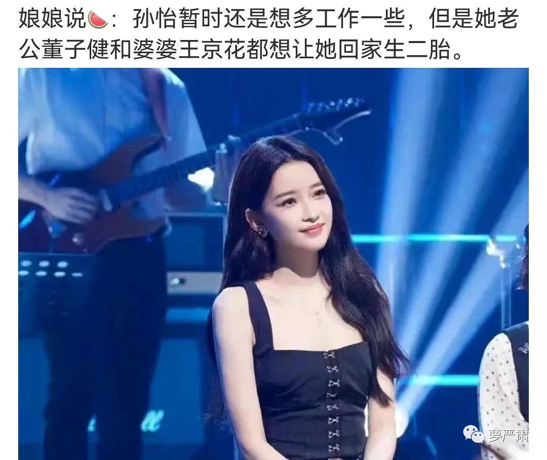 还有爆料说王京花和董子健都希望孙怡生二胎,但孙怡希望工作为主,不过这依然是没有实锤。