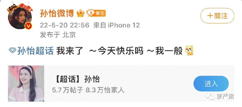 仔细一看也并非完全没有征兆,今年520年当天,孙怡到自己超话里对粉丝说:“今天快乐吗?我一般。”