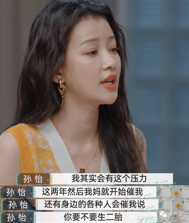 孙怡在说生孩子辛苦的时候,说的是自己妈妈和身边人还在催生二胎,没有提到男方家庭什么态度。但至少,如果连自己的妈妈都觉得“趁年轻生孩子很简单”的话,那很多细微的感受都需要孙怡自己消化。