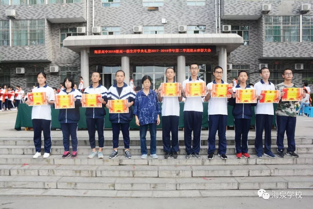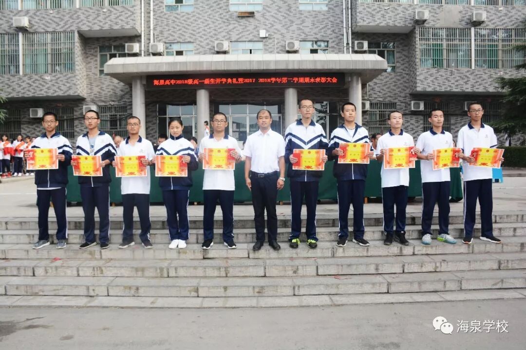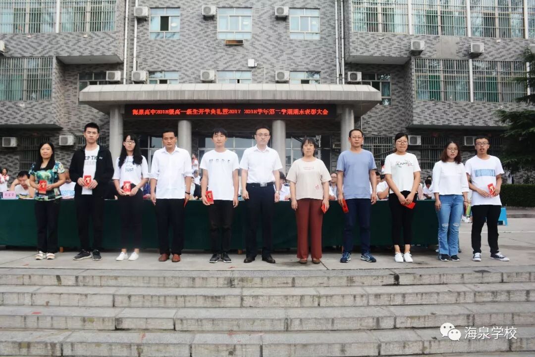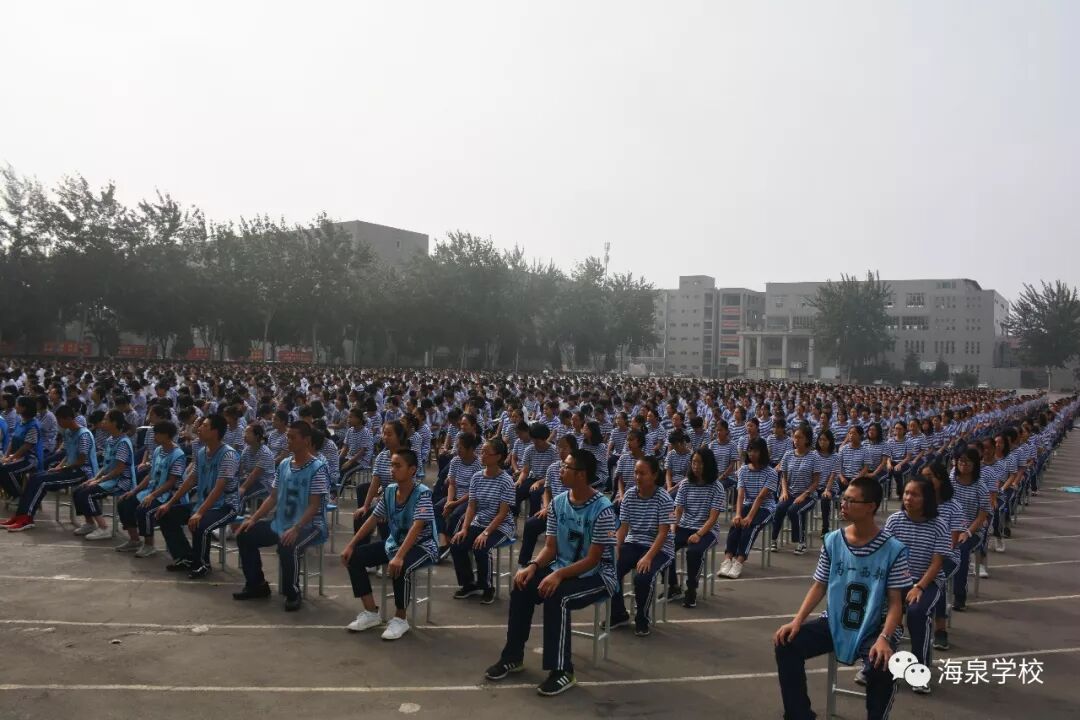 9月6日早8:00,我校高中部在学校大操场隆重举行了2018级高一新生开学典礼暨上学期期末考试总结表彰大会。大会由教务处李瑞萍主任主持,海泉学校校长王俊胜、海泉学校高中部校长宋明奇发表讲话,全体行政人员、高一年级主任及高一年级全体新生参加了大会。