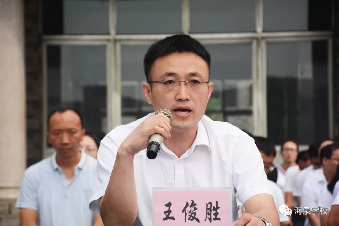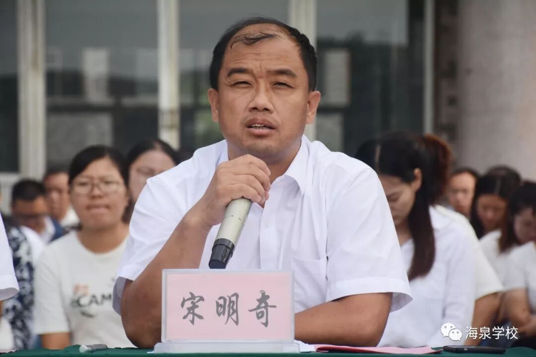 他对全体老师提出三点希望:希望老师们做一个“四有教师”,做学生锤炼品格的引路人,做学生学习知识的引路人,做学生创新思维的引路人,做学生奉献祖国的引路人;希望全体老师无愧于职业良心,无愧于家长的嘱托,无愧于学生的期望。立德树人,对学生的生命质量负责;厚德载物,为学生的终身发展奠基;希望我们每一个海泉人都能以新学年为基点,以满腔的热情投入到自身的工作和学习中去,为实现自己的目标而努力奋斗。