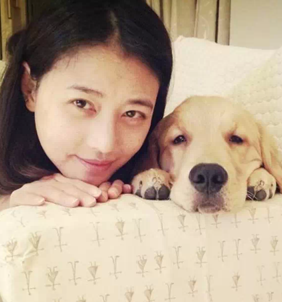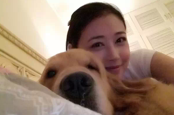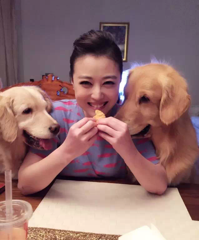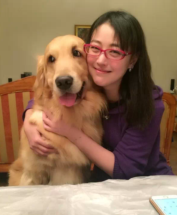 她亲切地叫两只大狗Tommy爸&Jenny妈。