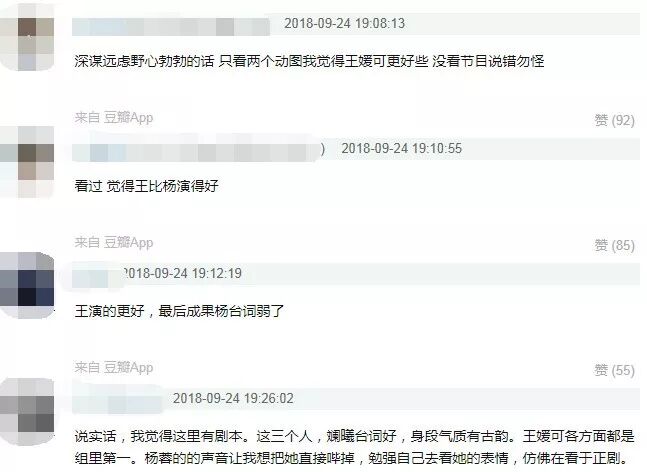 尤其是和另一位女演员王媛可的对比:俩人在听到圣旨后,情绪处理立见高下,杨蓉的处理读不出情绪起伏,