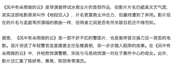据悉,《英雄本色4》极有可能以第一部《英雄本色》中的假钞案为主线,也可能是《英雄本色》的前传,目前剧情和主演都仍在保密阶段,但早前有传言吴亦凡将会主演该片。对此,丁晟没有正面回答,只表示要选“小鲜肉”里面会演戏的,而且男人味儿要多一点的演员。