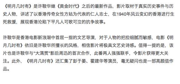 好在2016年年中,这个电影项目终于又重回大众视野,作为《在清朝》的第一出品方上影集团宣布该片已经进入到拍摄阶段。《在清朝》是贾樟柯首次尝试武侠商业片,影片讲述了清朝末年,科举制度被废除后,在文人、土匪、地方官之中所发生的动荡故事。《在清朝》依旧保留了贾樟柯的一贯风格,探讨了关于社会以及地缘等问题。原本该片由张曼玉主演,但目前《在清朝》的演员阵容还不得而知。