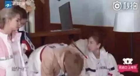 原来在做游戏的环节中,节目组要求所有人都脱鞋。不过在Baby脱鞋的过程中,Angelababy一脱鞋就被邓超吐槽:“Baby一脱鞋,跪着走了。”
