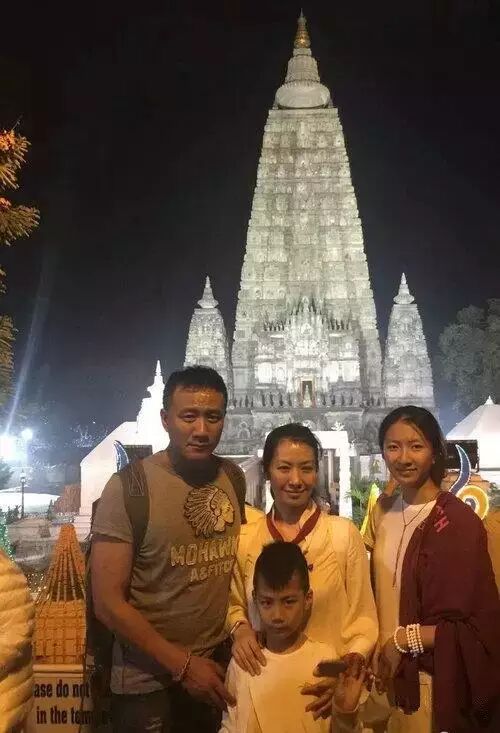 胡军微博晒出一家四口朝圣照片,图片来源网络。