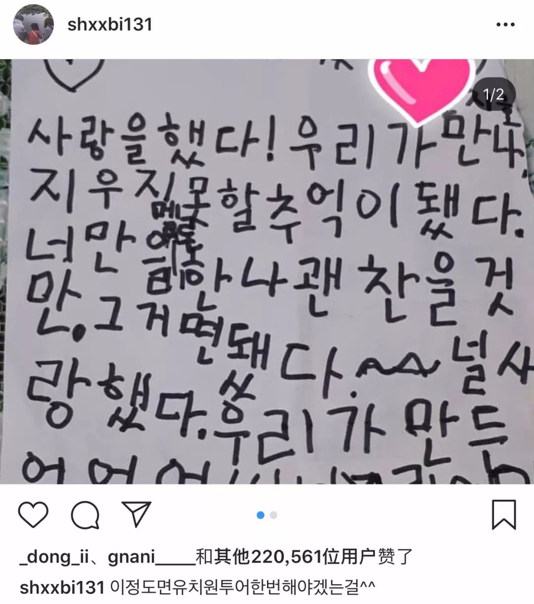9日, iKON金韩彬在IG上传了两张照片并附言:"这个程度的话应该要做一次幼儿园巡回吧"。照片中是孩子们手写的