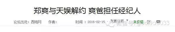 08年郑爽在流星雨的时候跟天娱签了八年,16年刚好结束。恢复自由身的郑爽打算成立个人工作室,今后的工作都是由家人打理。