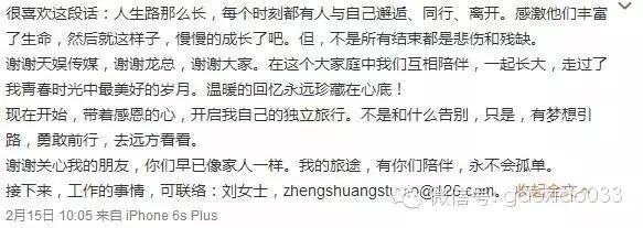 工作室出了声明,跟天娱解约。