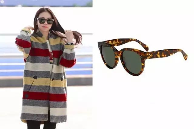 棕色图案的镜框很高调,与安昭熙身上的宽条纹图案大衣非常相配,贵气又不失气质。