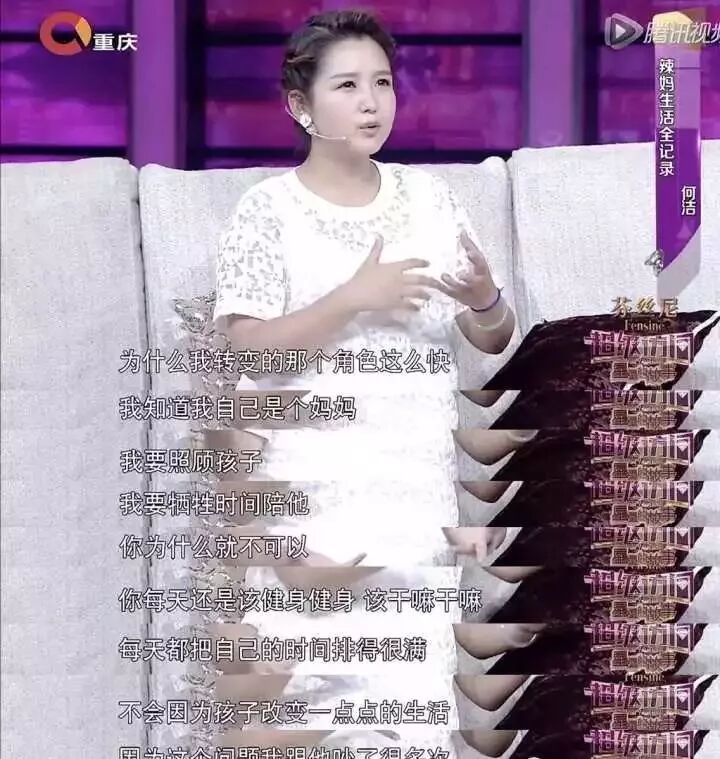 就像何洁,怀二胎都要生了的时候还在工作,身边还牵着咿呀学语的儿子,唱完歌之后累的直接躺在沙发上大口喘气。