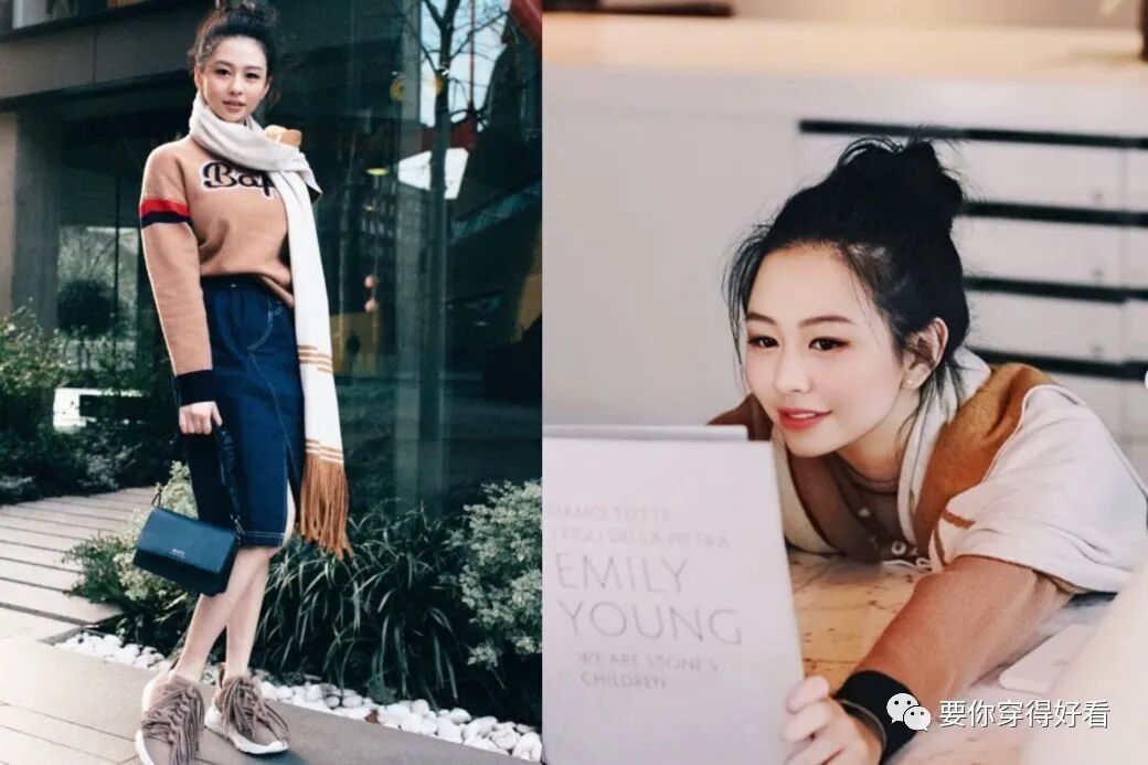 除了稍显成熟的一面,其实沈月更多是充满少女感的穿搭。针织上衣配铅笔牛仔裙,外搭一条长围巾,大方得体中不失俏皮可爱,甜美得恰如其分。