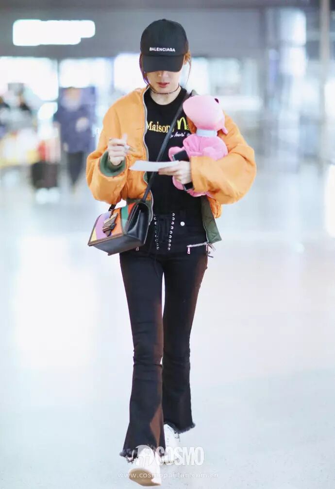张天爱同样是用它来迎合整个造型的帅气,上至派克大衣,下到机车靴,里里外外透着高冷气场。