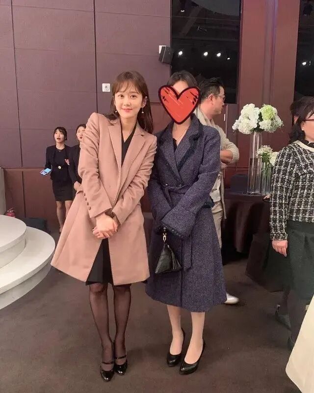 张娜拉这个时候是和别人的合照,感觉整个人的动作都是比较可爱,里面穿的应该是一条黑色的裙子,不过外面又搭配了一件浅色的大衣外套,不过脚上穿着一双比较偏向于性感的丝袜,所以显得整个人其实更加有成熟女性的魅力。