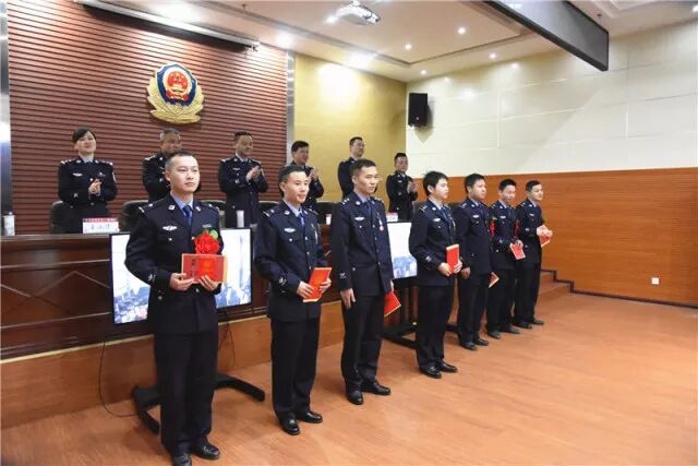 分局党委成员为2017年度优秀民警、辅警颁发荣誉证书。