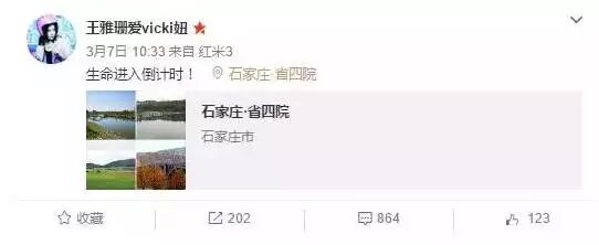 2016年3月7日,王雅珊曾在微博写下“生命进入倒计时!”,让无数人心酸垂泪。