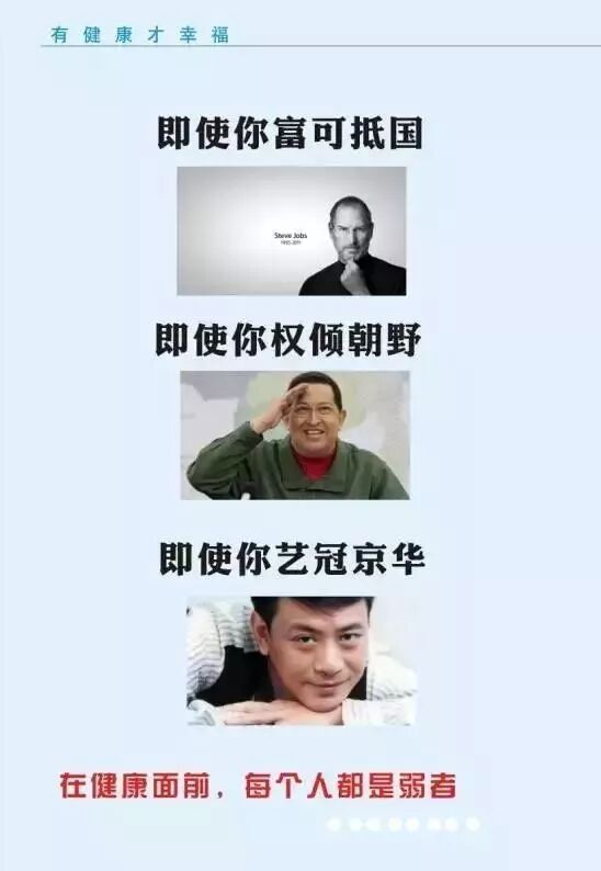 健康第一,健康才是王道!没了健康,其他的诸如:财富、名誉、地位、面子、奢华、小三、豪车、名宅……都是浮云!身体是革命的本钱,不管有钱没钱,都要花钱保养好自己,身体健康才吃得嘛嘛香。且活且珍惜!!!