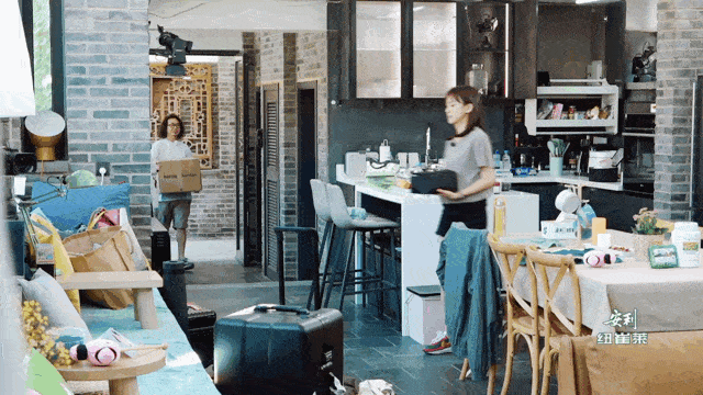 是可以互相打空气电话那种「幼稚」。有一幕陈意涵从loft楼上扔东西给许富翔收拾,扔了几个之后,许富翔说下一个,陈意涵就作势爬到栏杆上要跳,自己都笑了,说「享年36岁」。