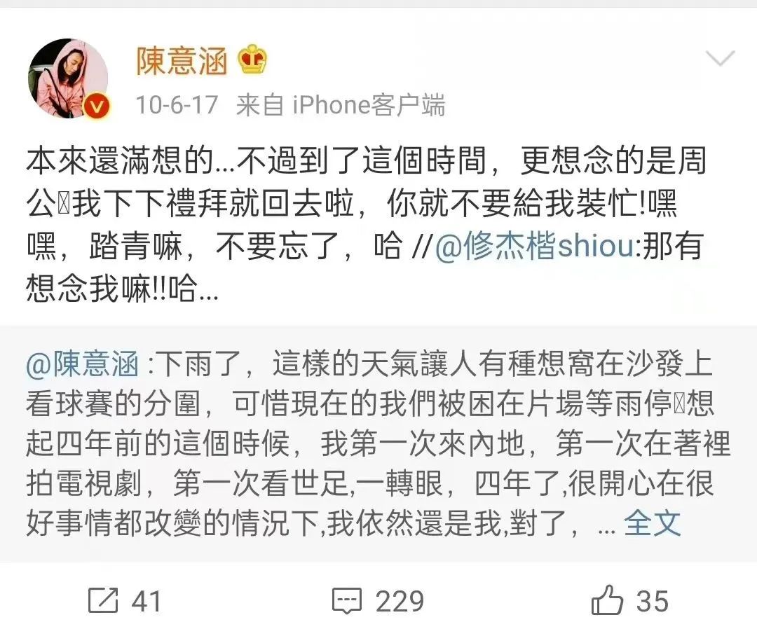 并且,公开互动有一个人性规律,爱ing或者爱ed的人,互动是没有那么频繁和显眼的,只有比较坦荡的关系,才能这样公开你来我往,哪怕暧昧期,都不会那么直抒胸臆。